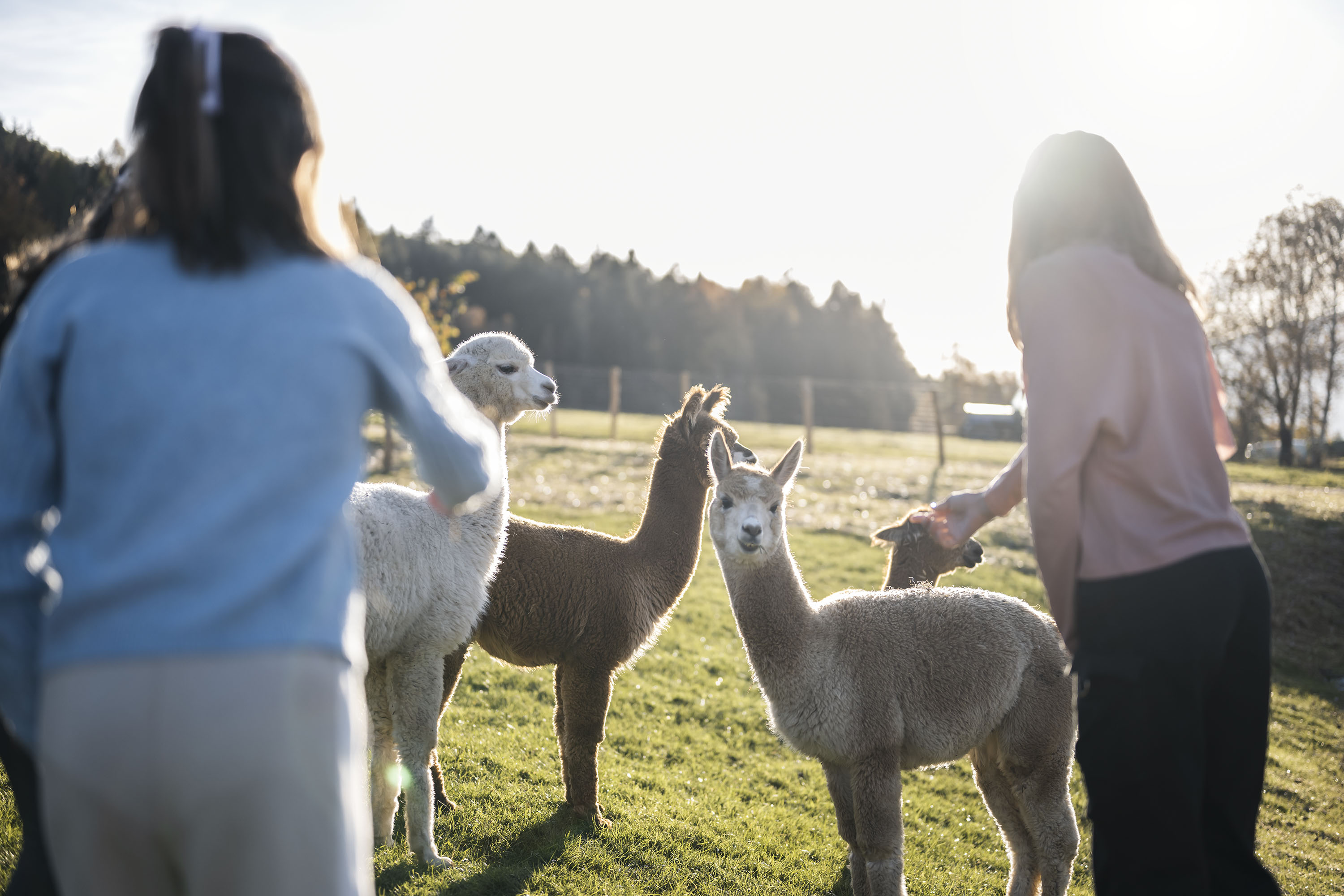 Seasonal activities: apple pressing, horse-drawn cart rides, and milk-a-cow experiences