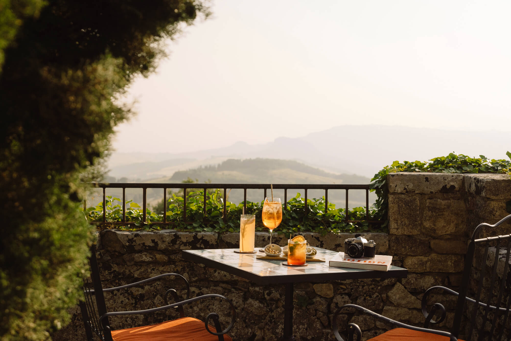 Belvedere Bar – Sunset drinks overlooking rolling hills and vineyards.