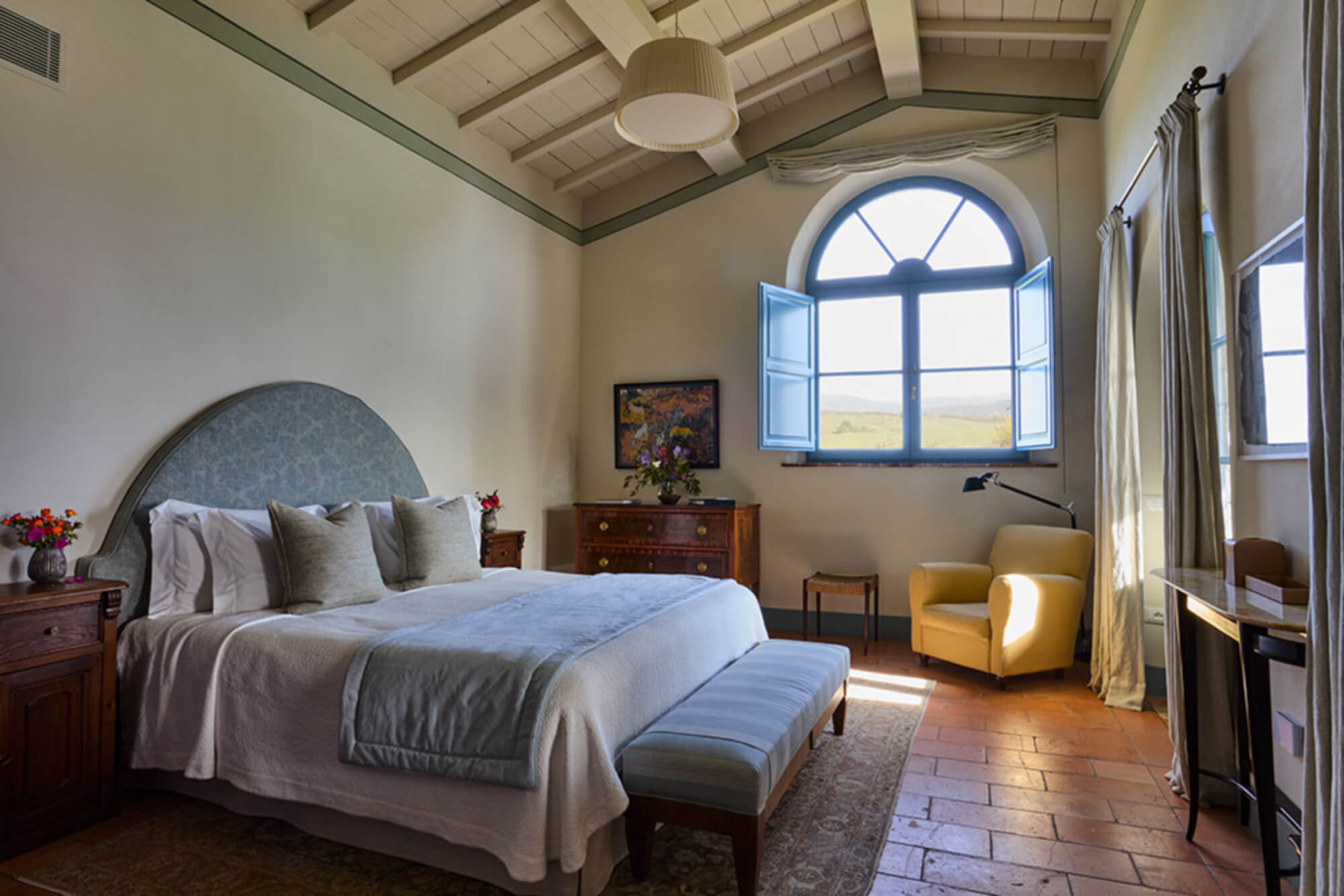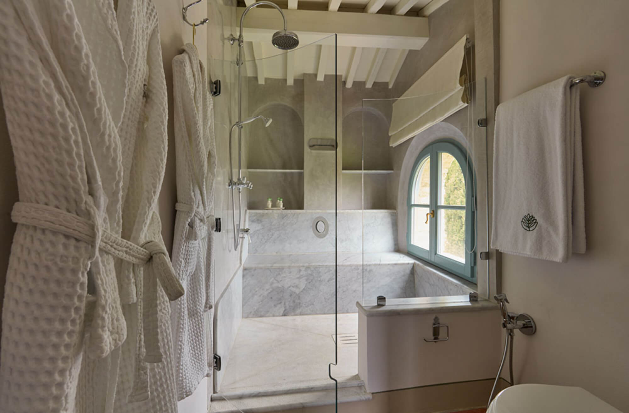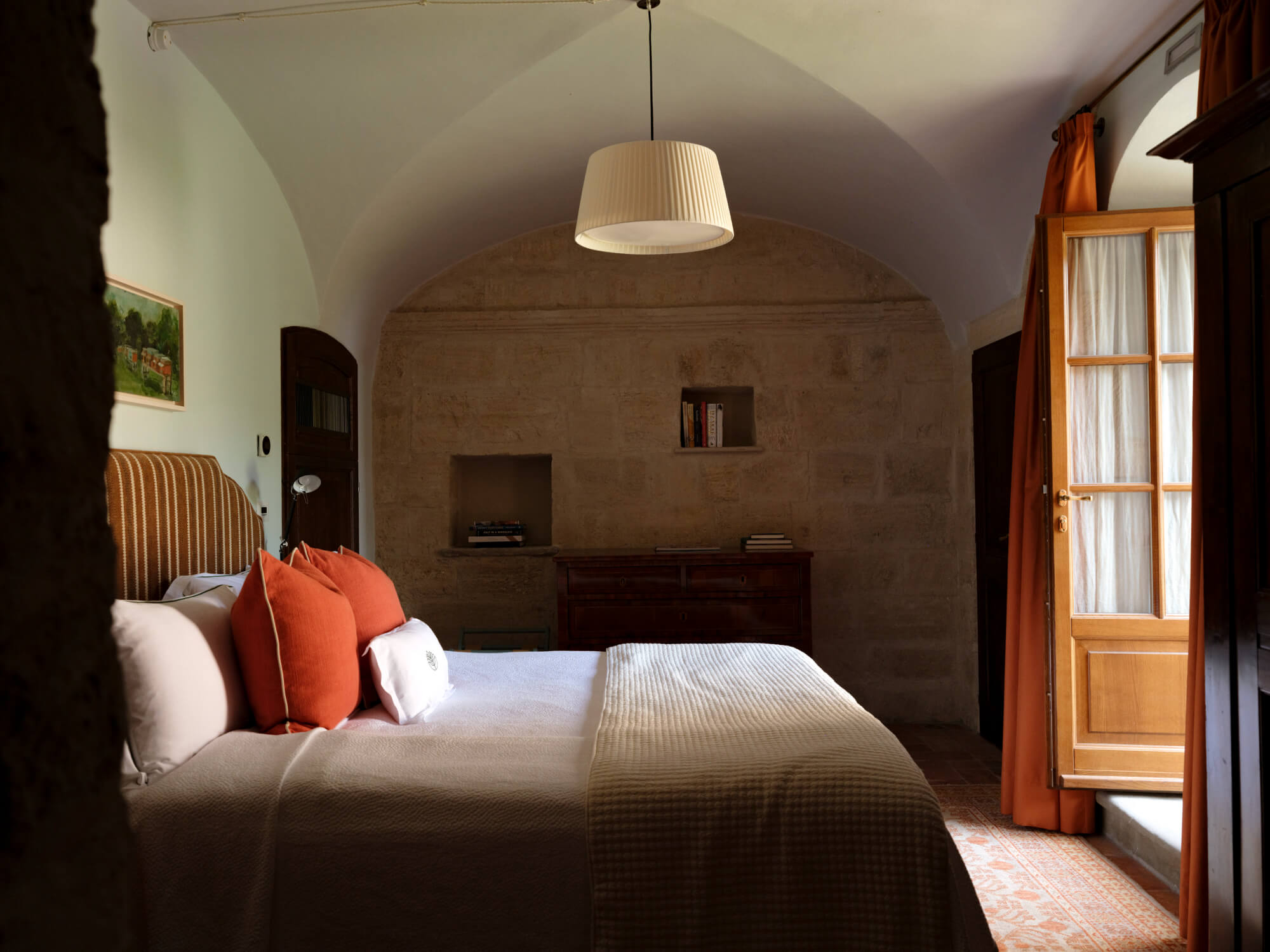 A beautifully restored three-bedroom historic house beside the estate’s Romanesque church. Offering expansive living spaces and complete privacy, it’s ideal for larger family gatherings or special occasions.