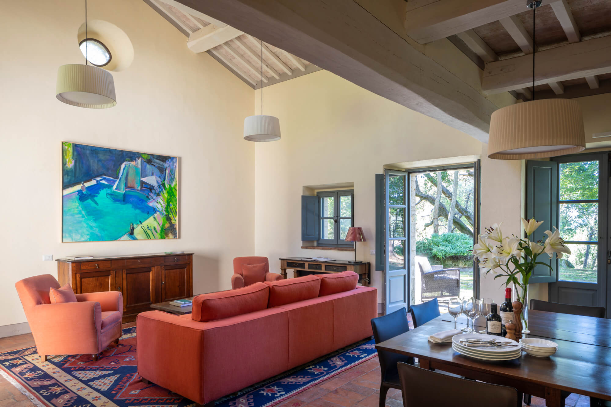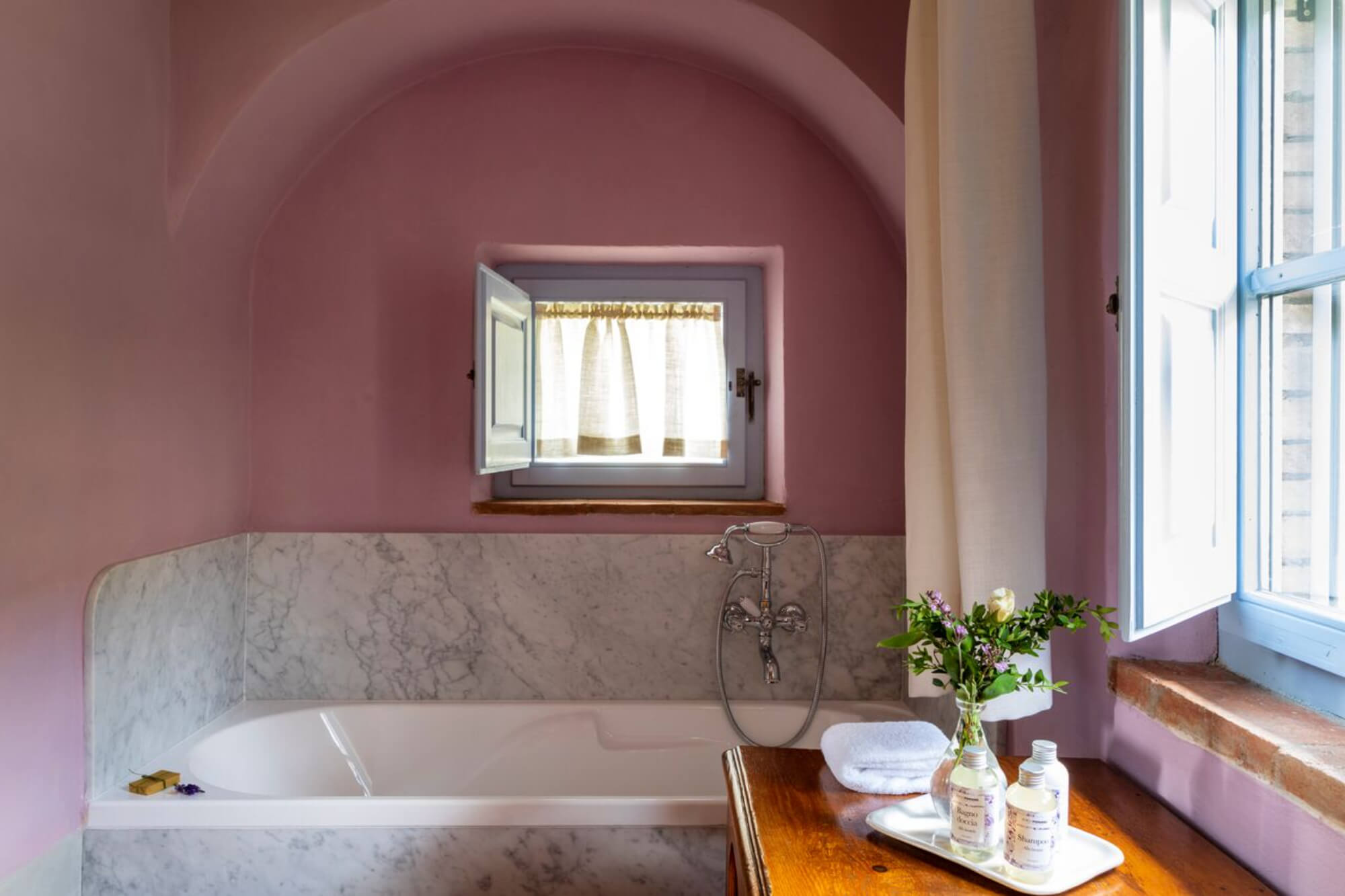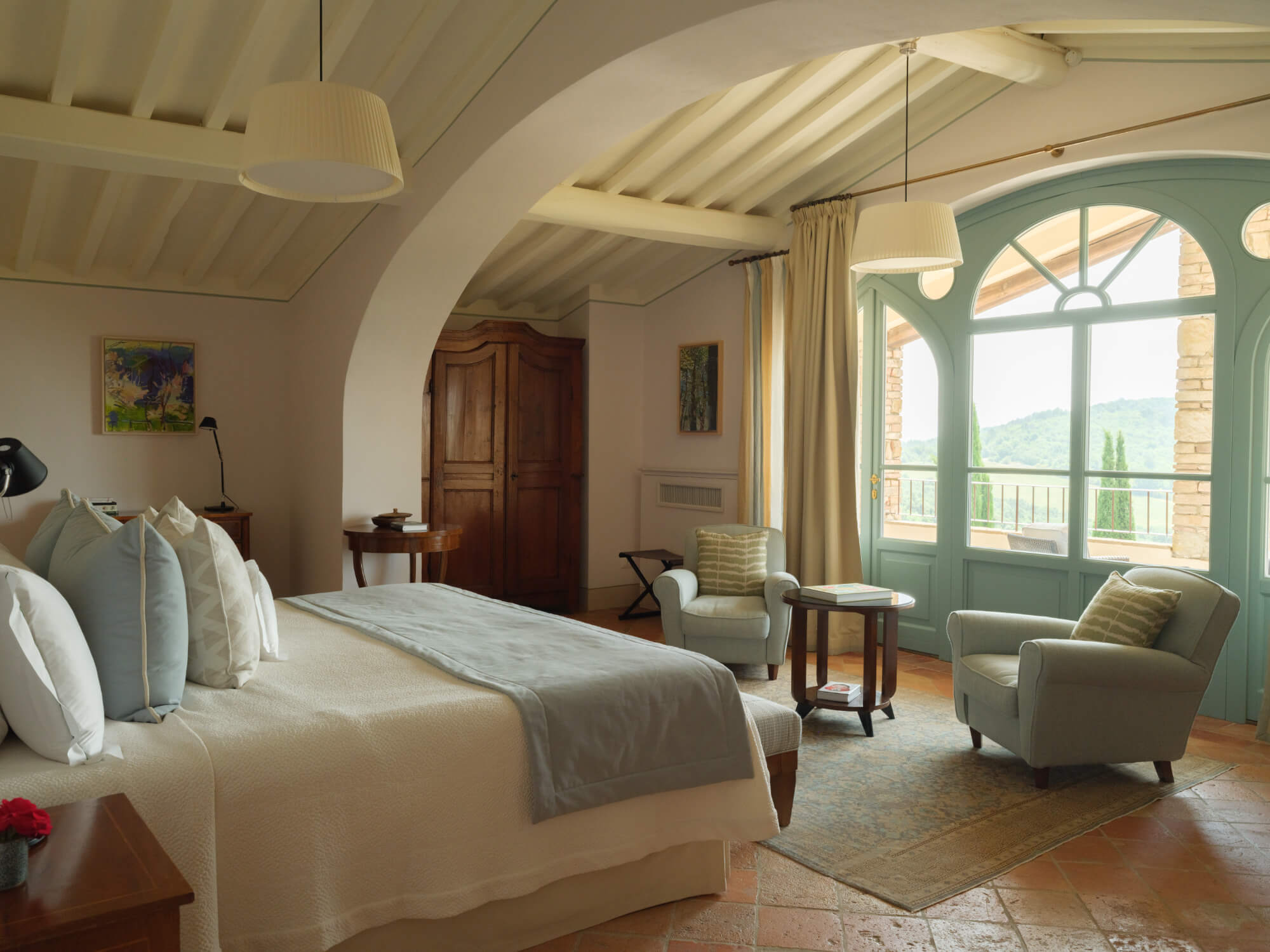 A beautifully restored three-bedroom historic house beside the estate’s Romanesque church. Offering expansive living spaces and complete privacy, it’s ideal for larger family gatherings or special occasions.
