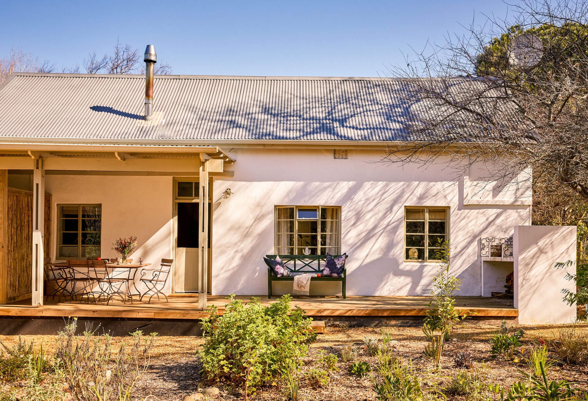 Eighteen interleading cottages in a secluded corner of the farm with a natural swimming pool and indigenous gardens. 2-night minimum stay on weekends.