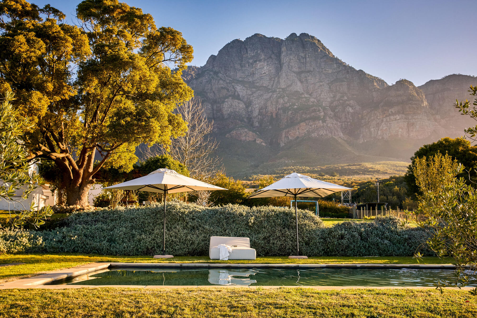 Set among orchards at the foot of the Simonsberg Mountains, with shared pool access. Ideal for families wanting space and mountain views. 2-night minimum stay on weekends.