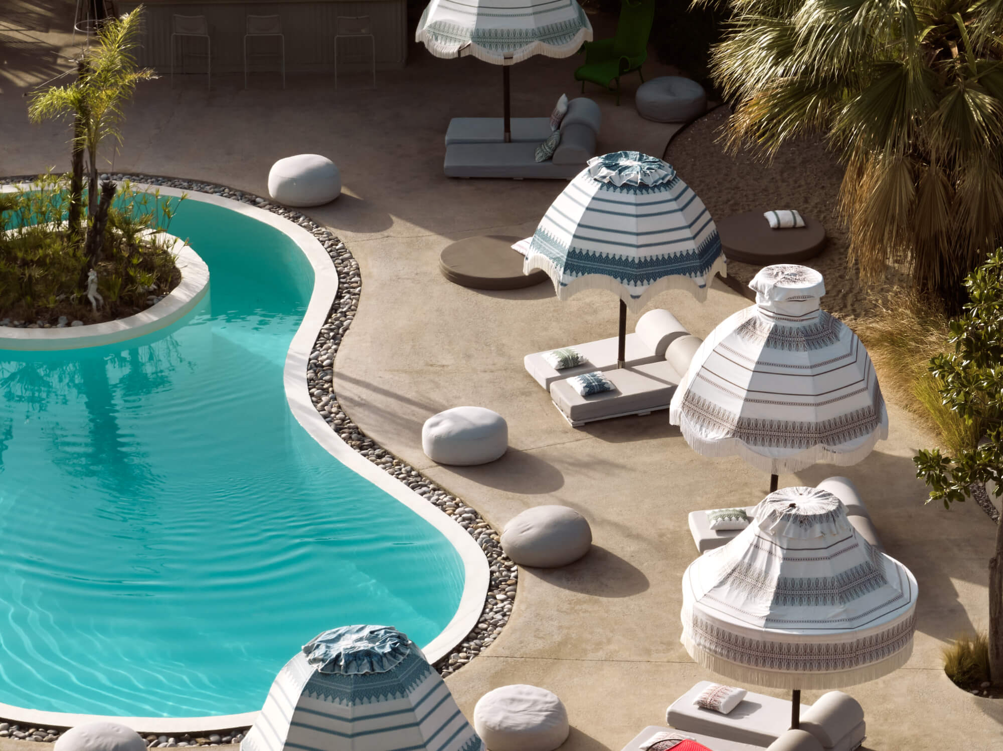 Two Bedroom Pool Suite – 58–62 m²; spacious suite with private pool and outdoor lounges.