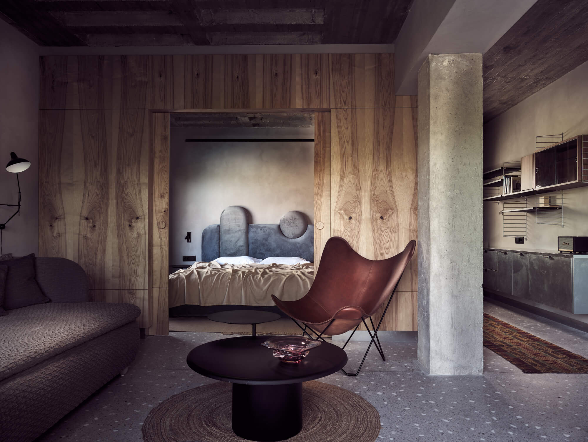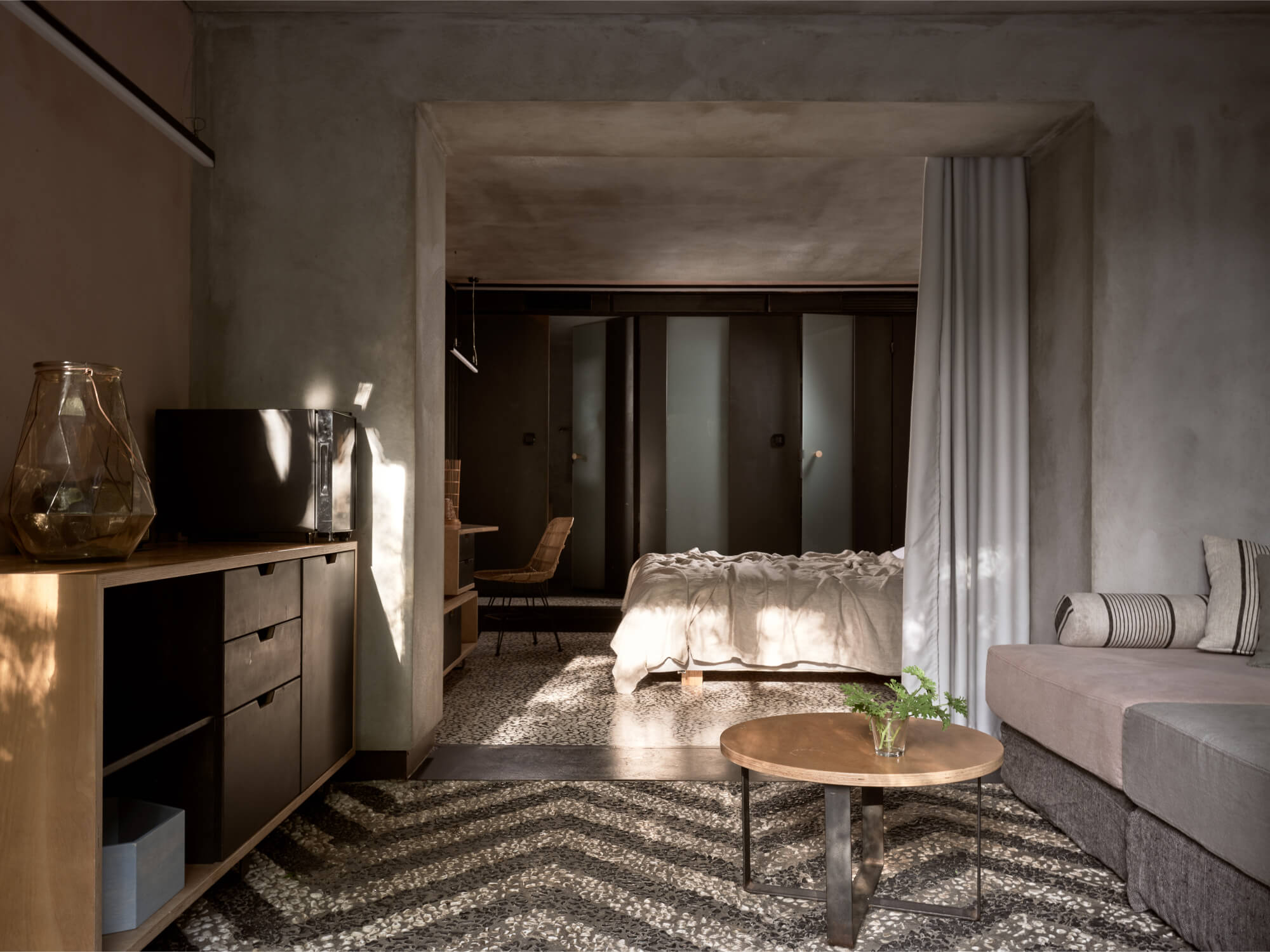One Bedroom Patio Suite – 45–50 m²; open-plan space with private patio.