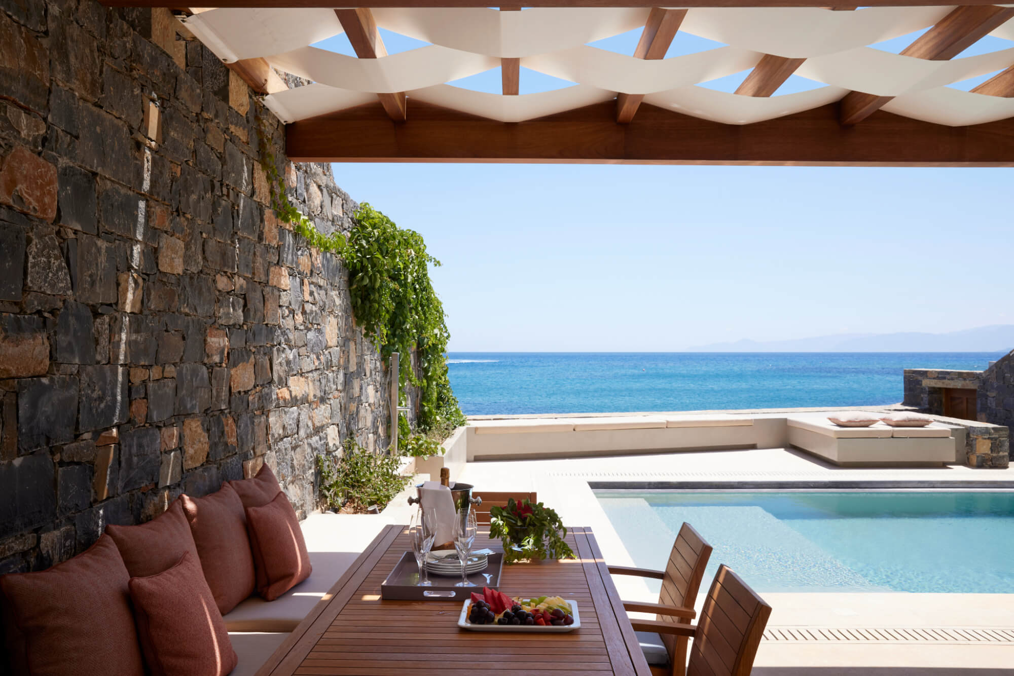 Dining at Elounda Peninsula combines international flair with spectacular waterfront settings.