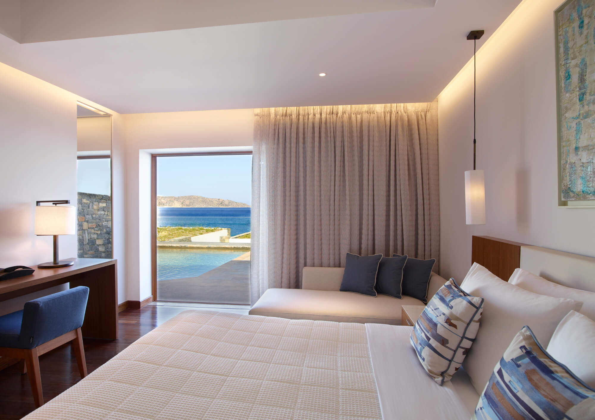 Sea View Junior Suites – Open-plan layouts for up to 2 adults and 1 child.