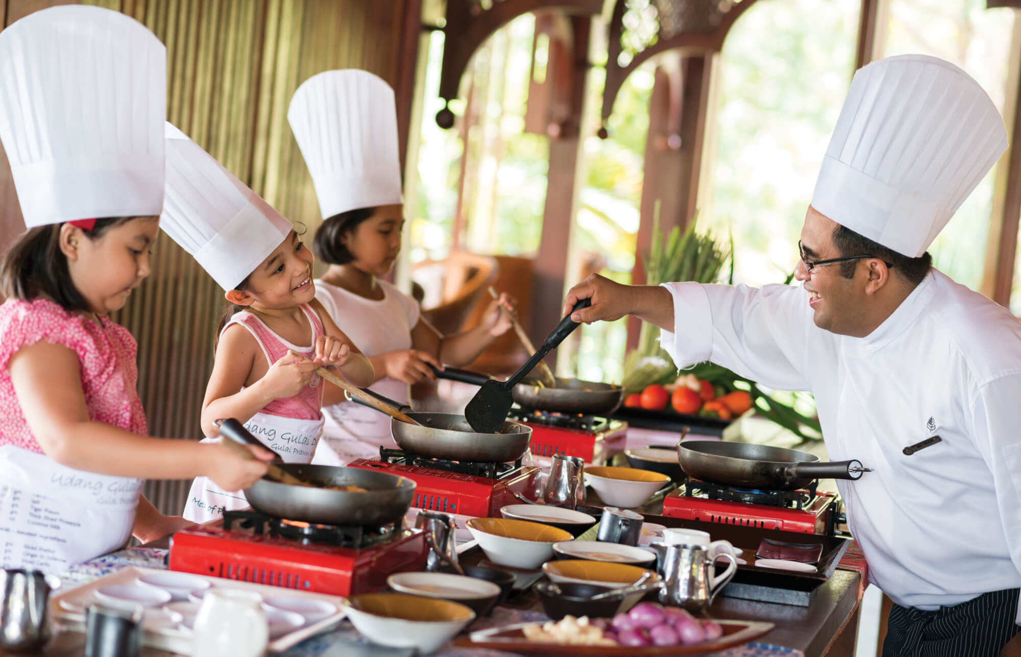 Children aged 4 and above can join the Kids For All Seasons programme, with activities including cooking classes, outdoor games, kayaking and nature discovery. Daily activities take place at the Lutong Kids Club, ensuring younger guests are just as entertained as the adults.