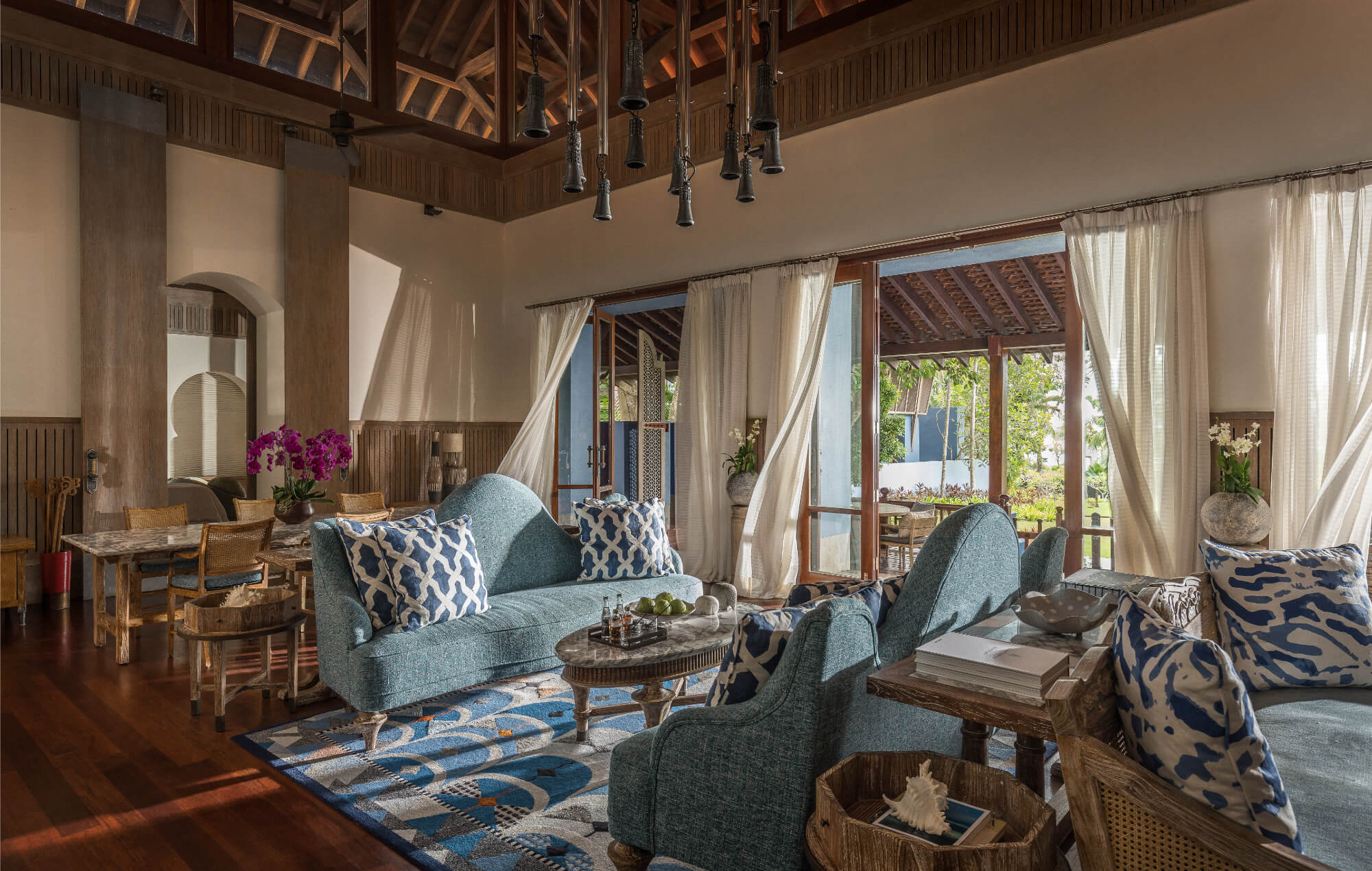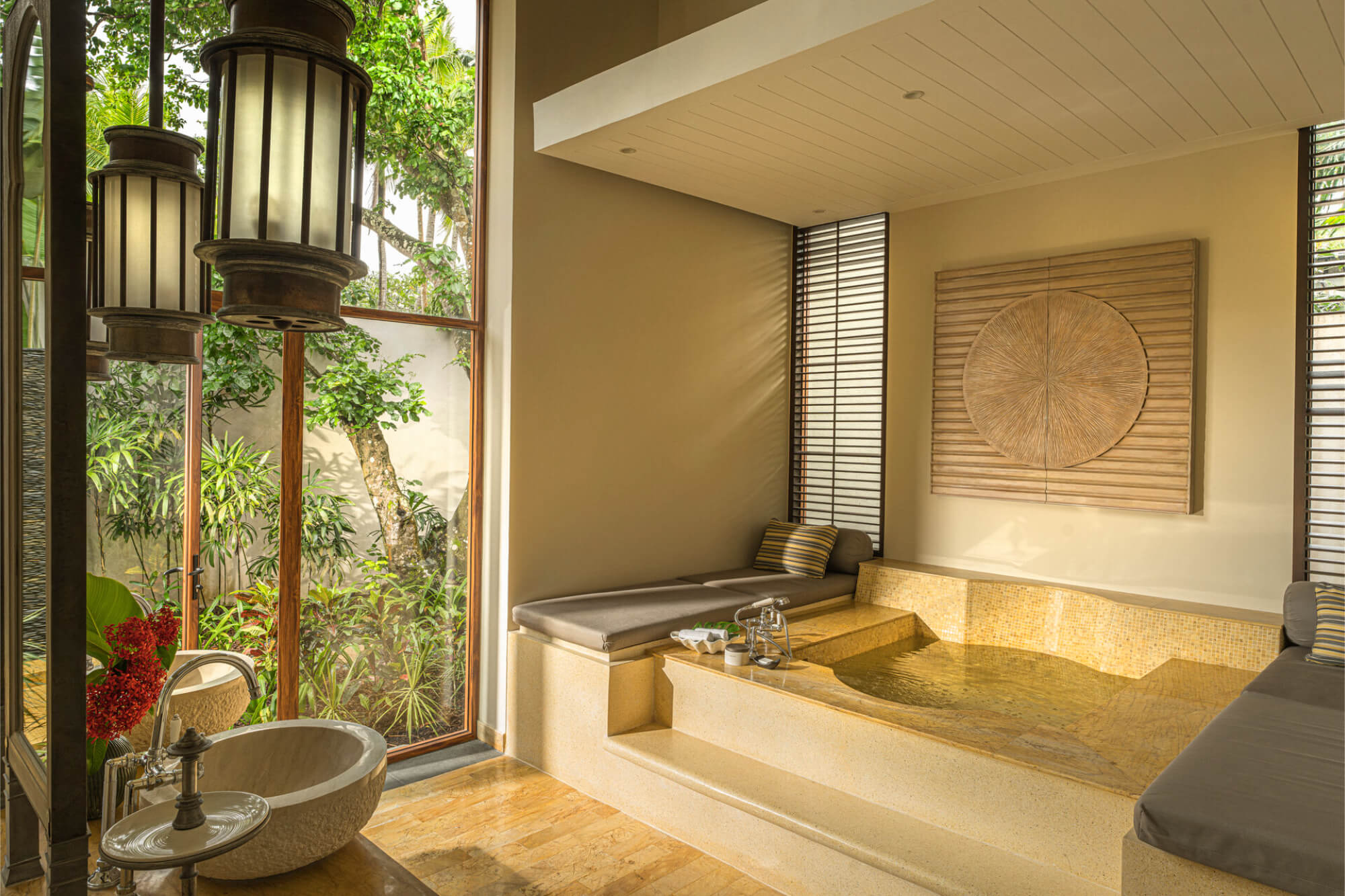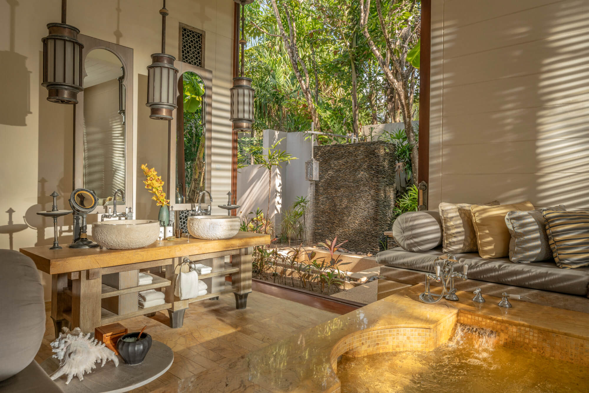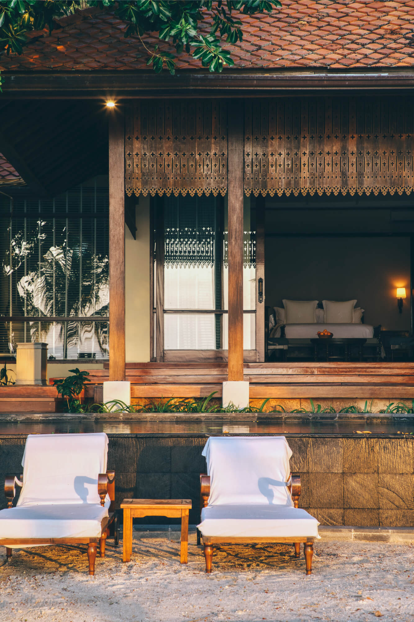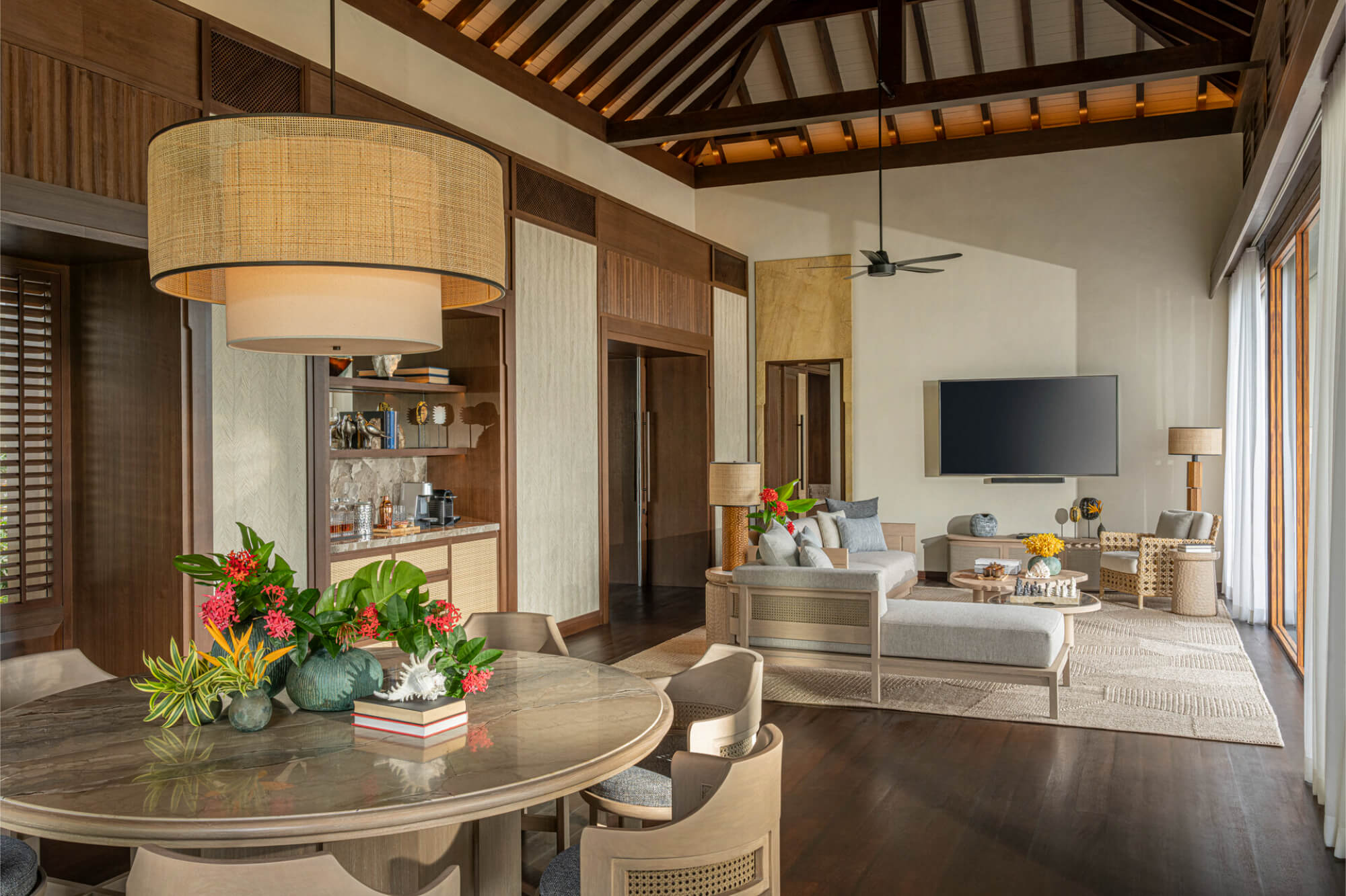 The resort features 92 spacious accommodations, including 68 pavilion rooms and 24 private villas, many with their own pools and generous outdoor living areas.