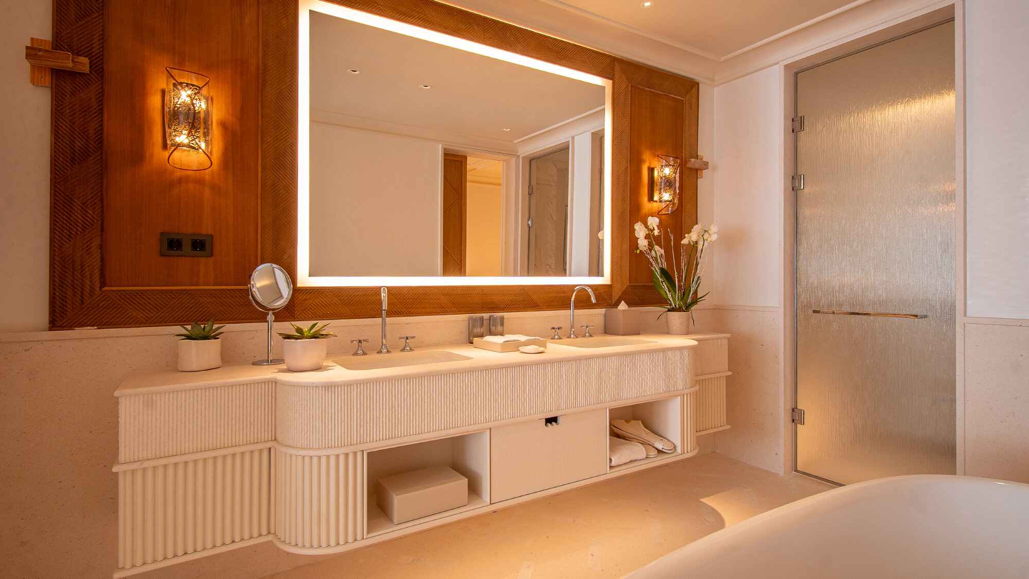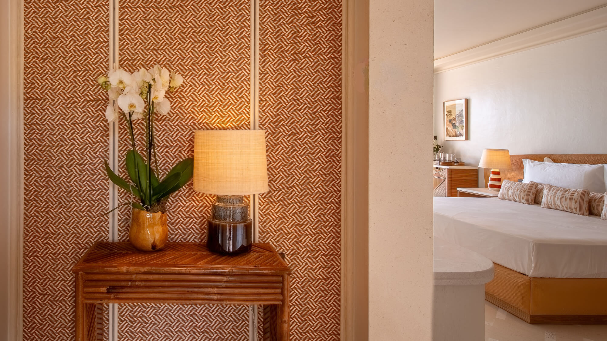 A refined, sophisticated room with expansive sea views and elevated finishes.