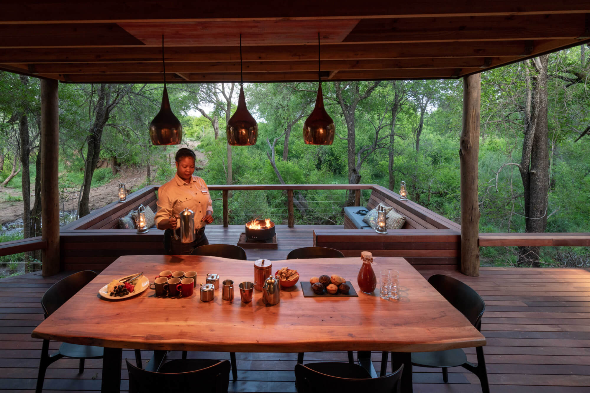 Tlou Deck — meals & sundowners overlooking wetlands, often visited by elephants and other wildlife