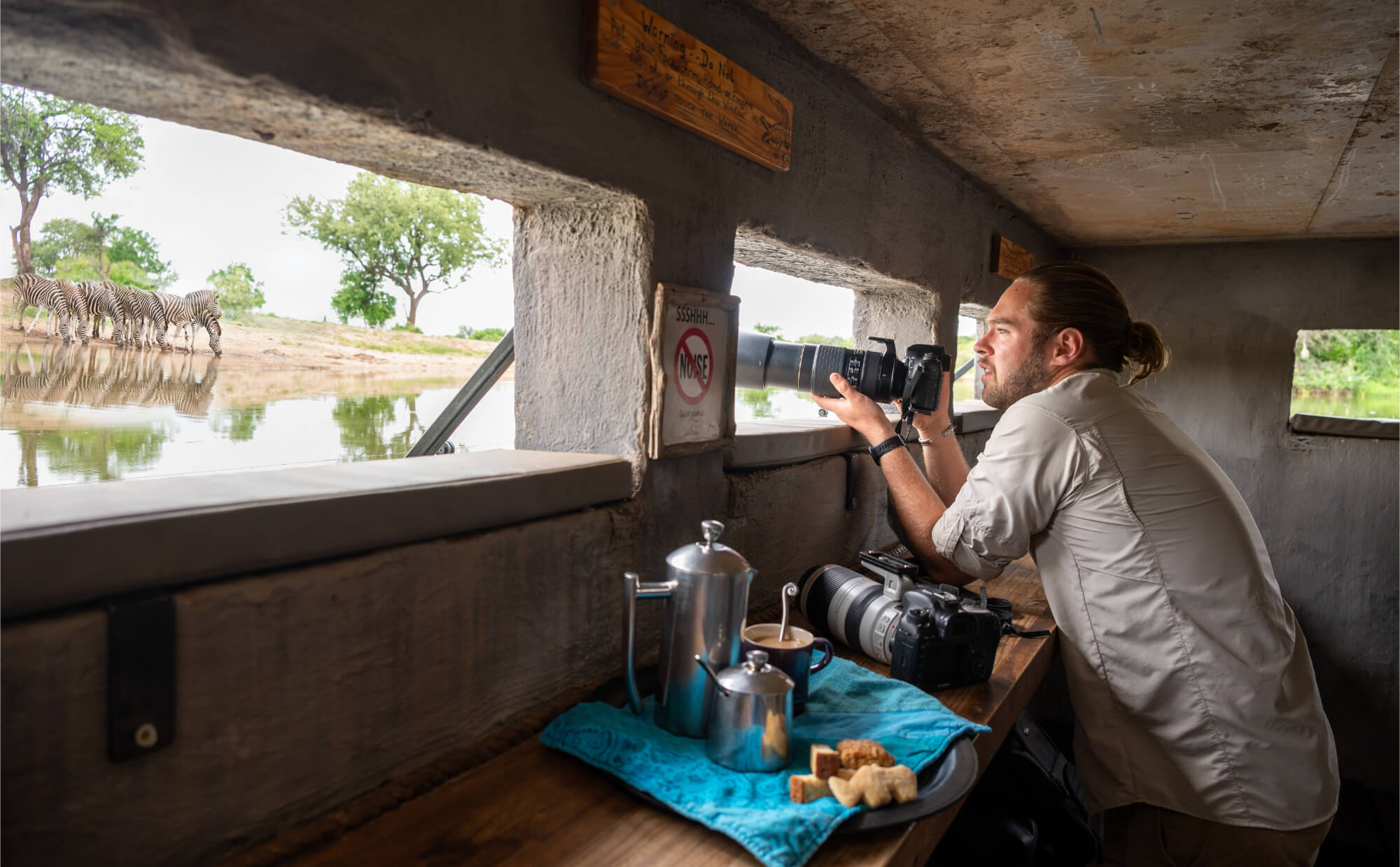 Terrapin Hide — submerged, 270° waterhole-level photographic hide.