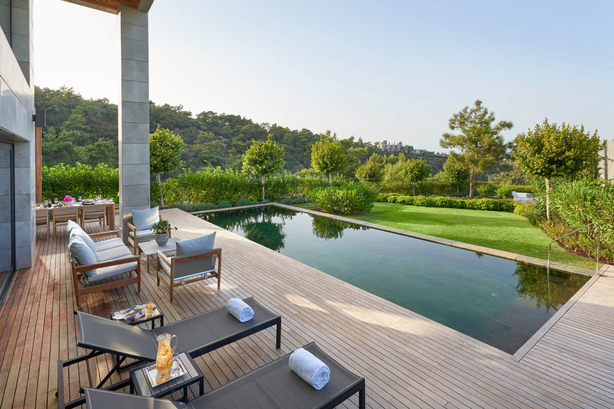 Private kitchen, dining room, fireplace lounge, pool and Mediterranean garden — one of the resort’s grandest options.