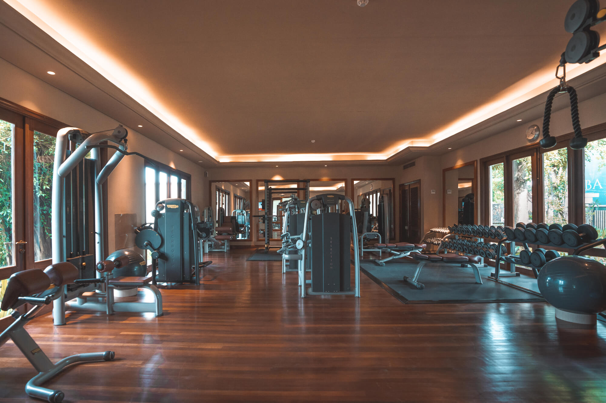 Fitness Centre open 24/7 with Technogym equipment, yoga, aqua gym, and tennis courts