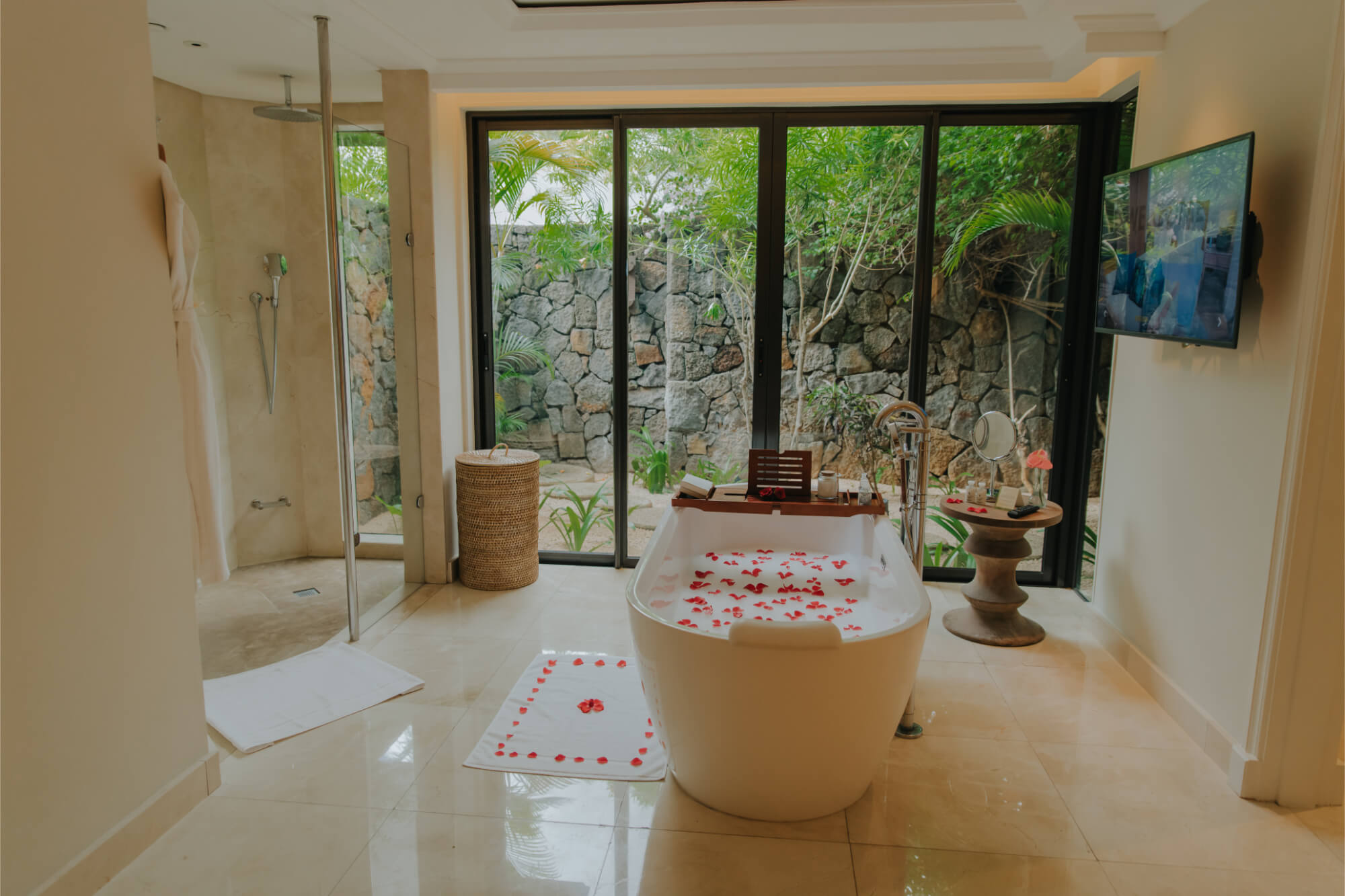 All villas include Nespresso machines, Molton Brown amenities, and a private outdoor shower.