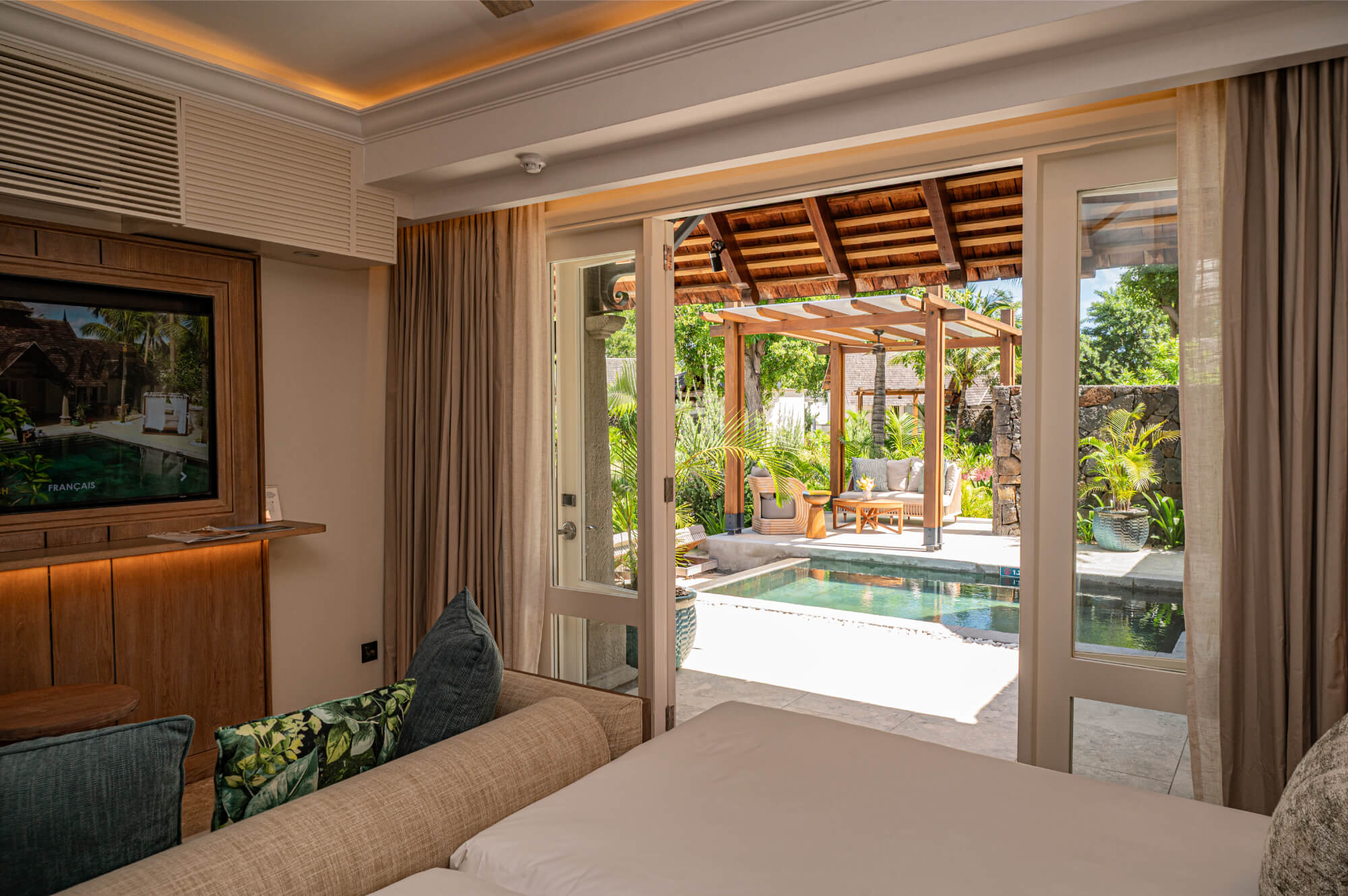 Elegant one-bedroom villas surrounded by tropical gardens, ideal for couples or small families (2 adults + 1 child).