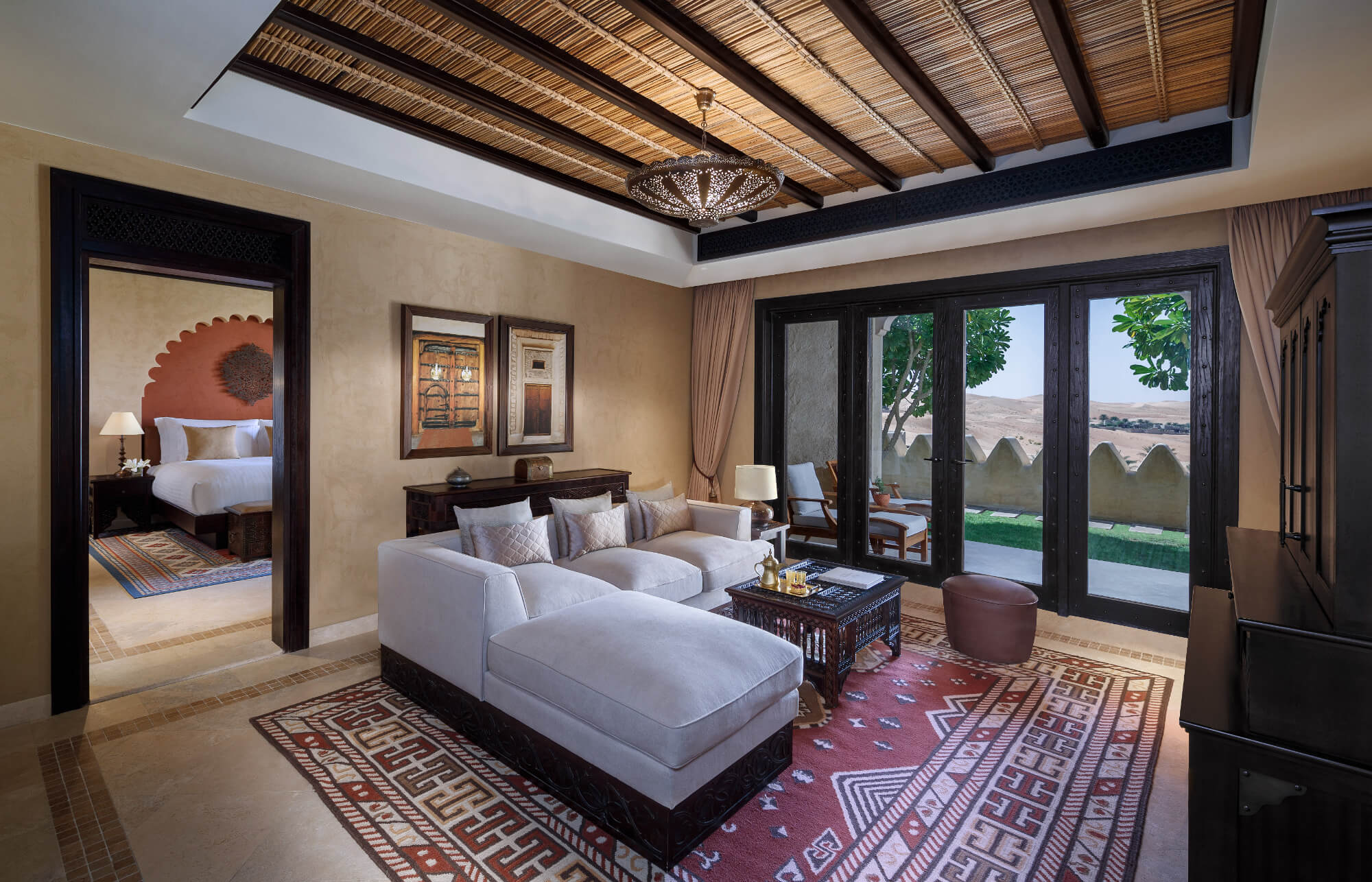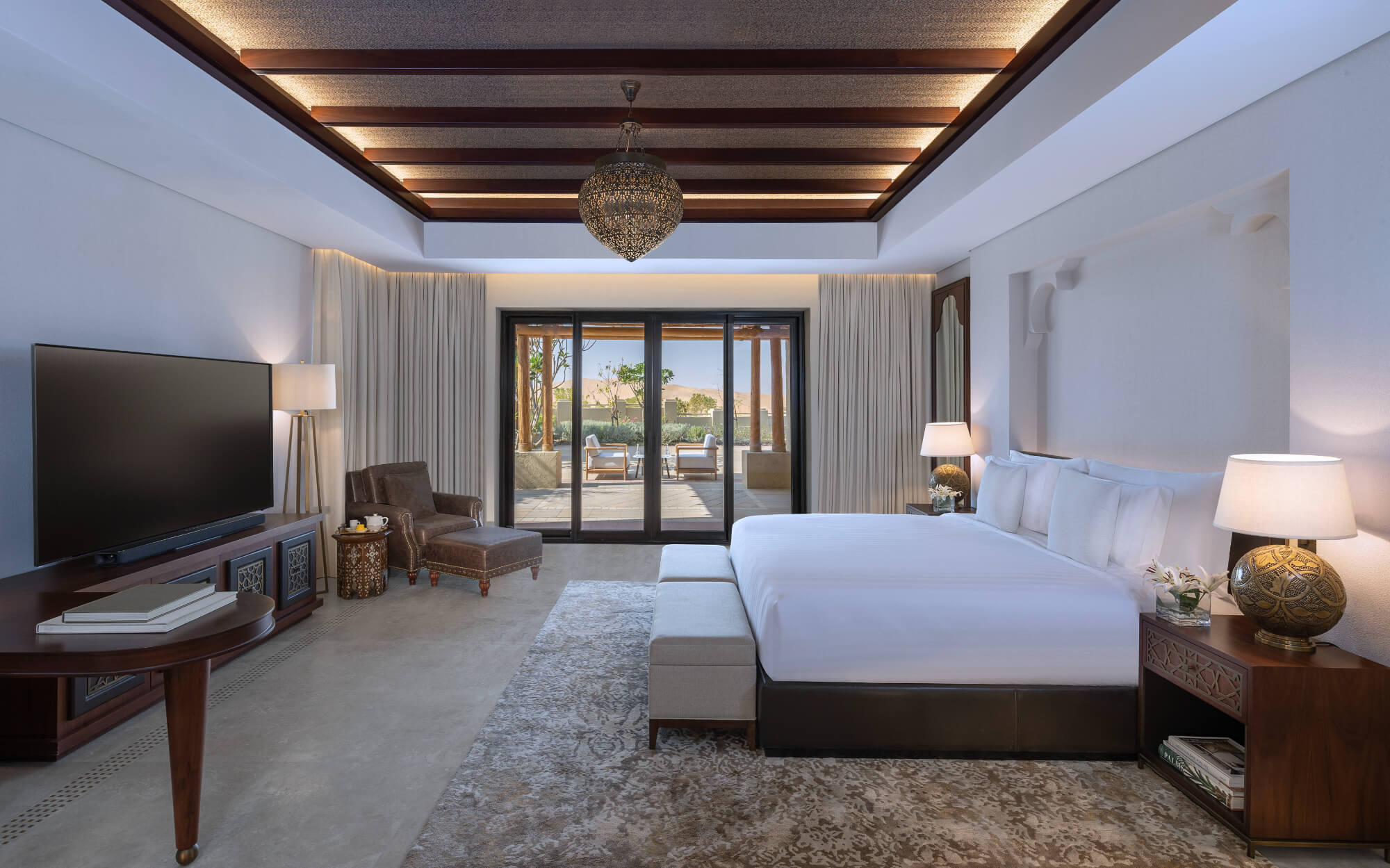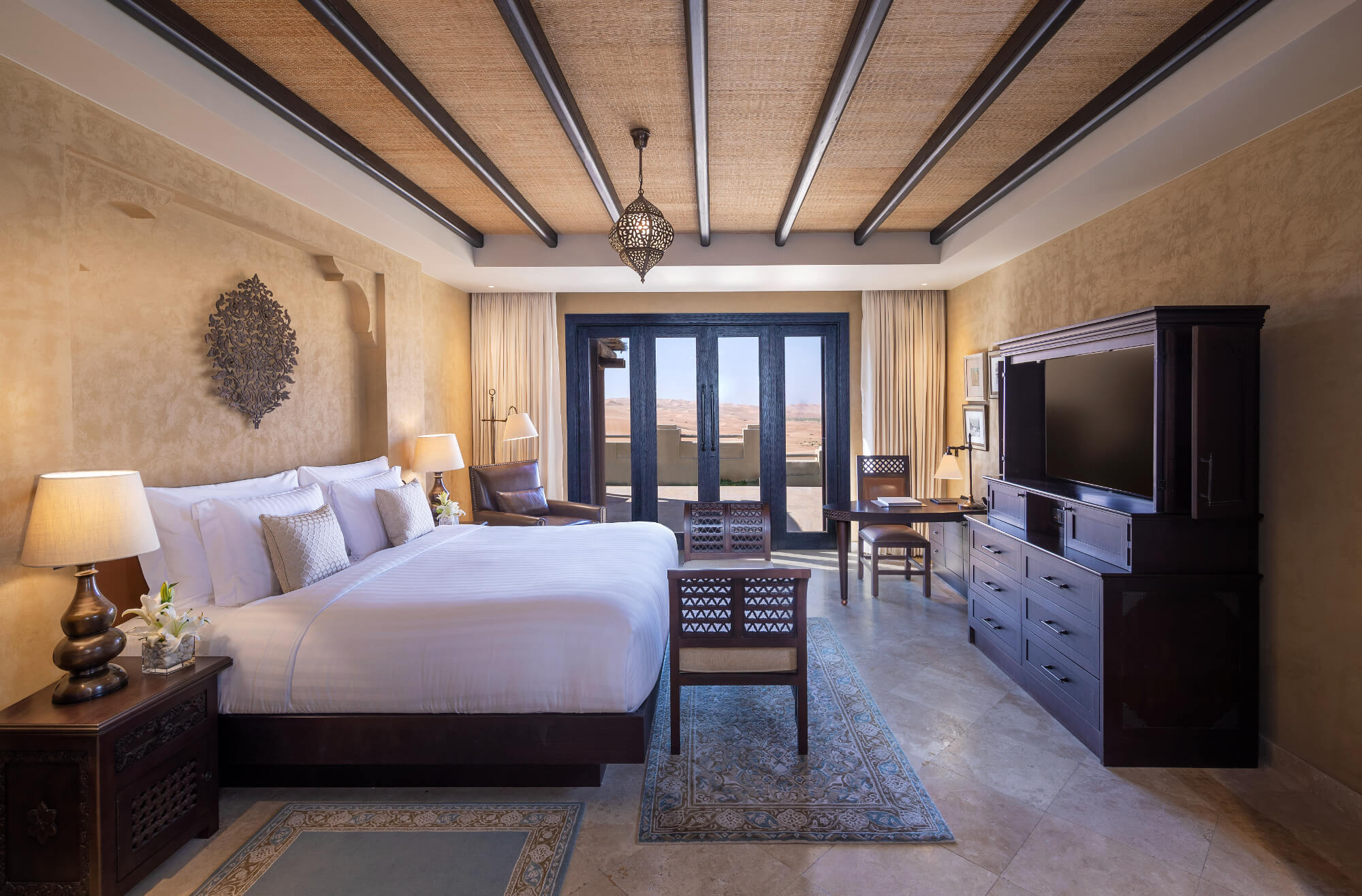 Deluxe Terrace Room (50 m²) – Corner rooms with expansive terraces and panoramic desert views; king bed only.