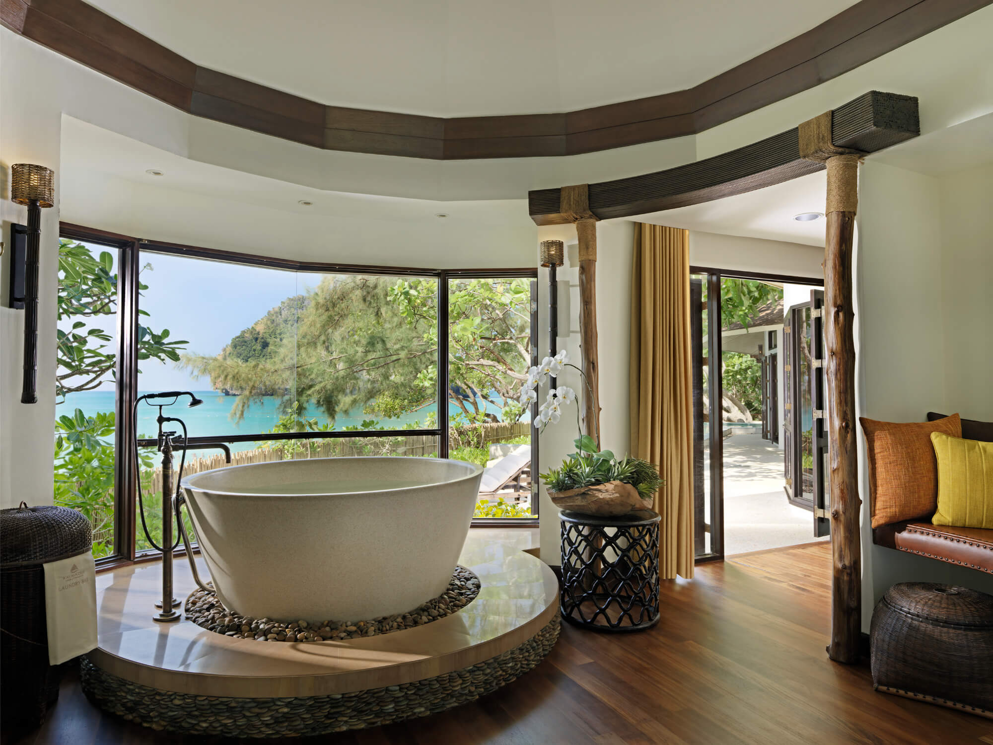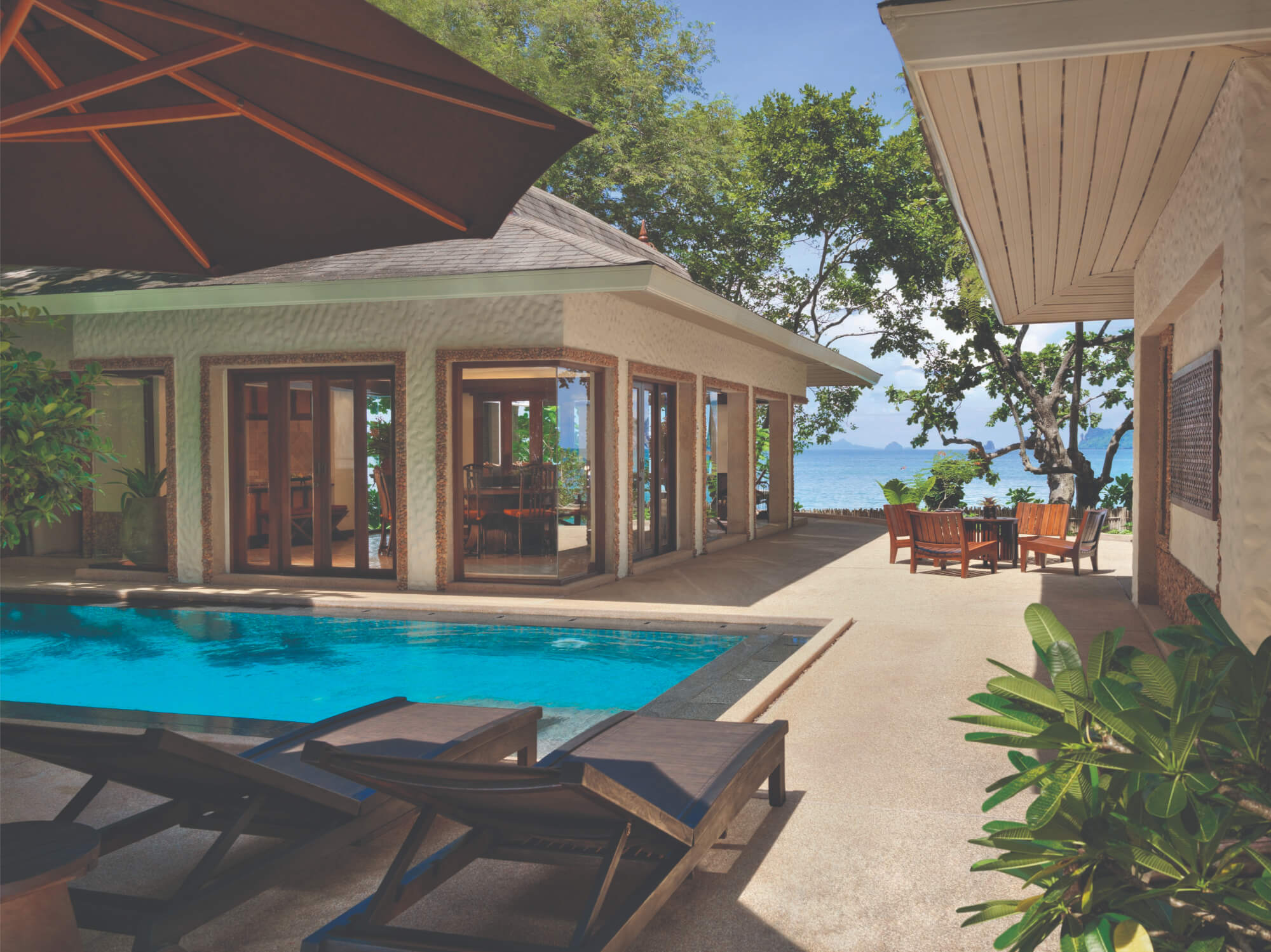 A two-bedroom villa set on a sheltered corner of Railay Beach, with living and dining room, kitchenette, outdoor deck and hydro pool, plus dedicated butler service.