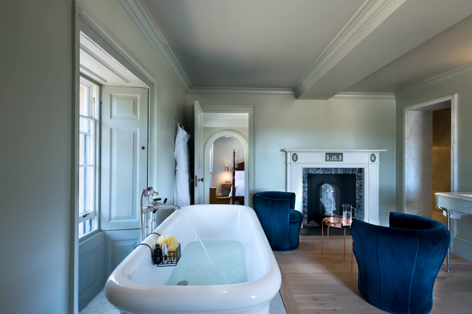 Hadspen Room (Rooms 8 & 9) – A refined two-bedroom suite within Hadspen House, suitable for families of up to five, with the option to accommodate a cot or a rollaway bed for younger children.
