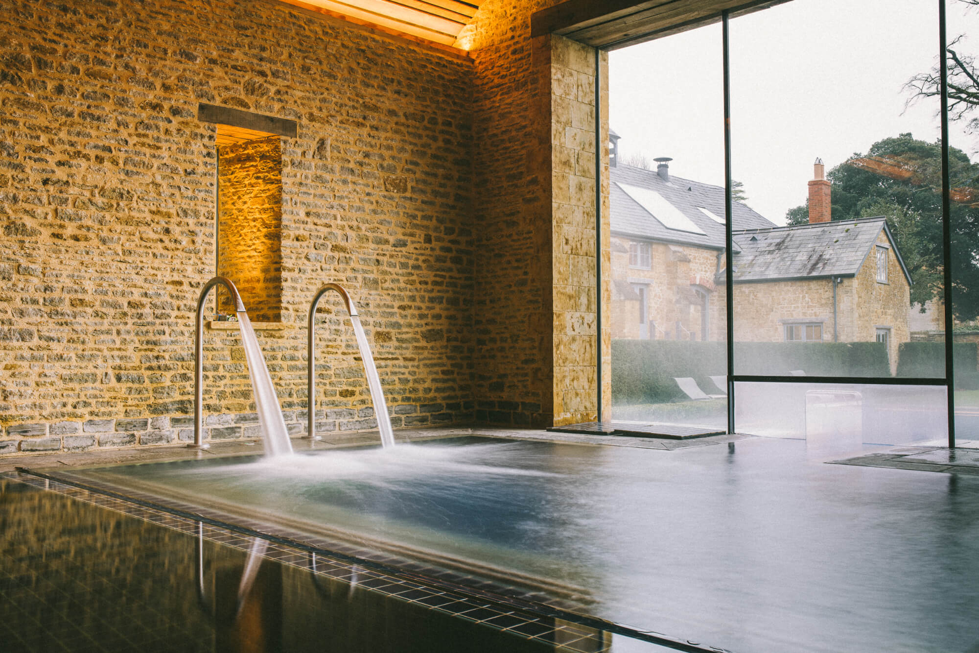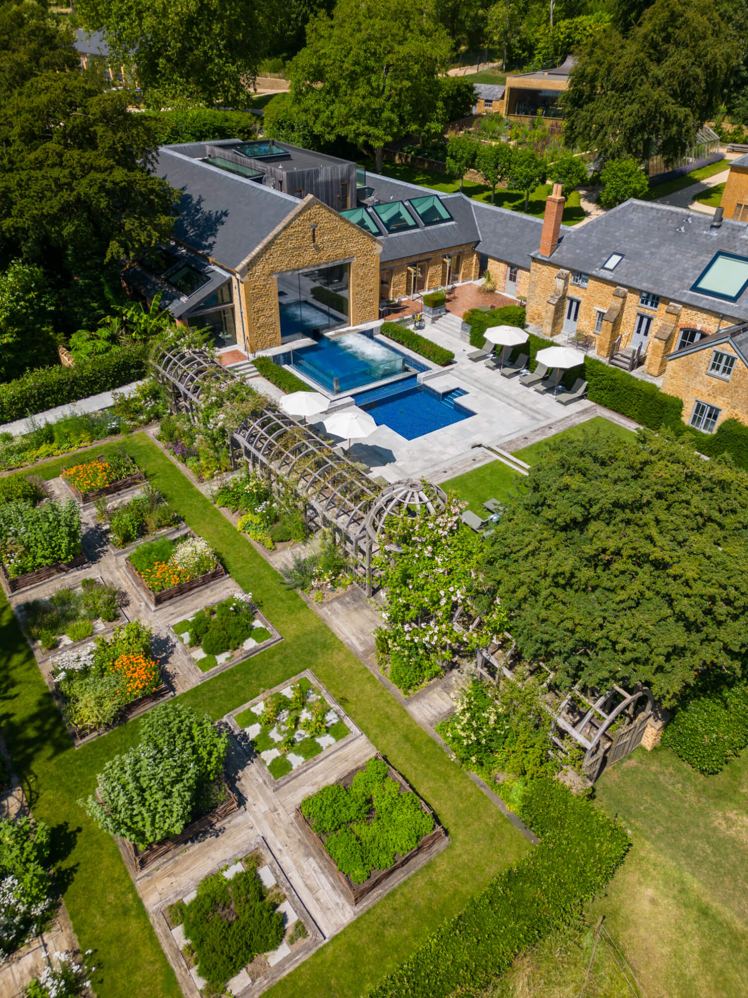 The spa is woven into the landscape, allowing parents to unwind while children enjoy the estate.