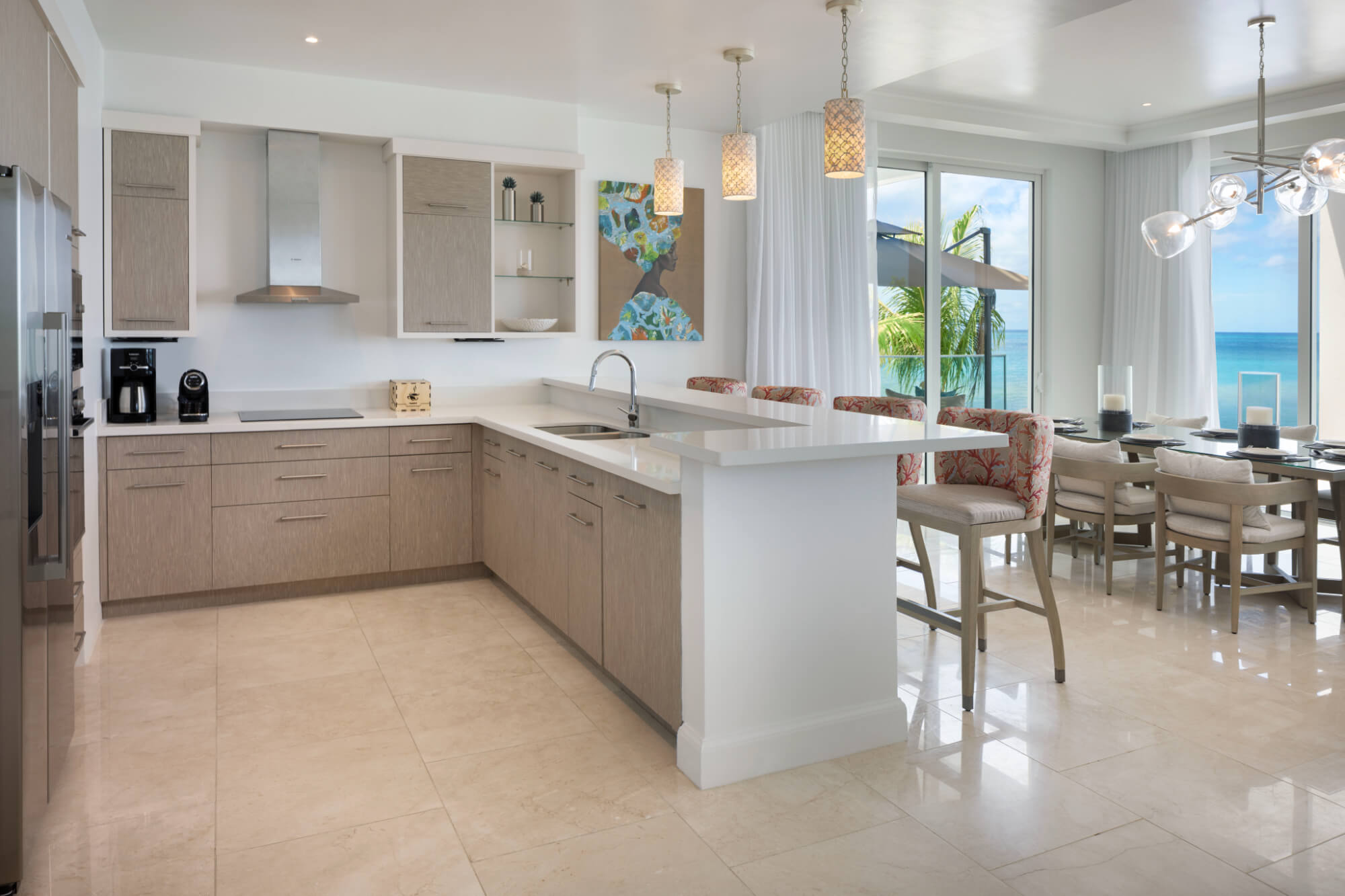 One- or two-bedroom suites set close to the shoreline, featuring separate living areas, sofa beds, generous terraces and long ocean views. Larger layouts offer open-plan living and dining with easy beach access for relaxed family days.